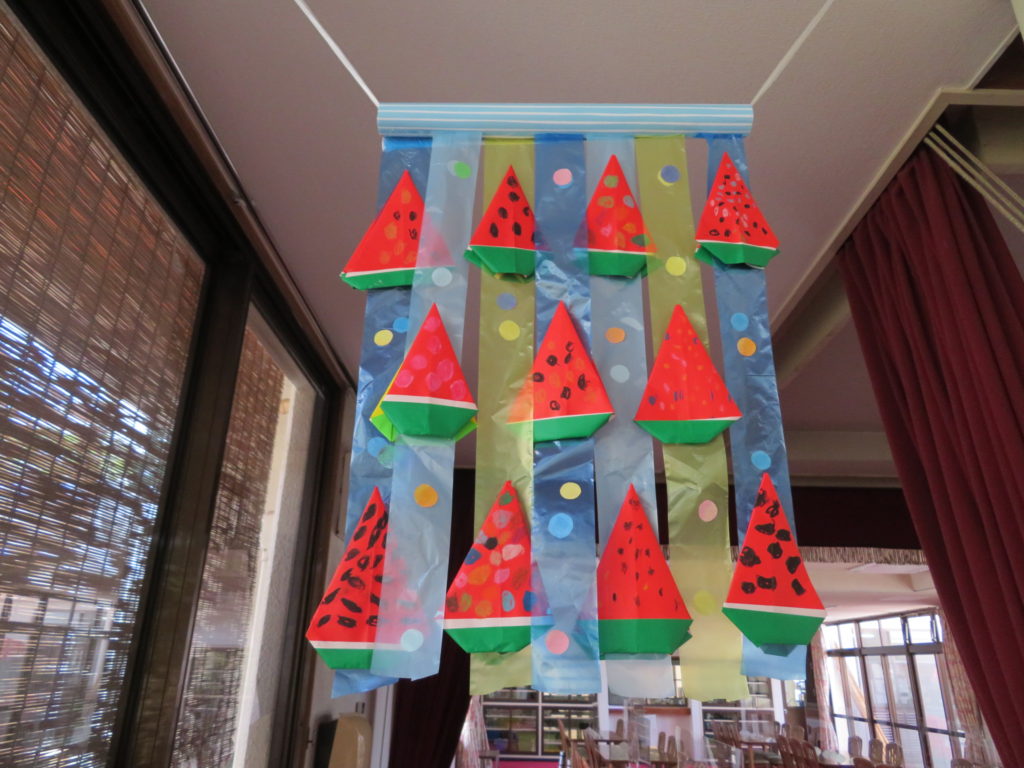 スイカの暖簾は、食堂ホール入口に飾りました🙌