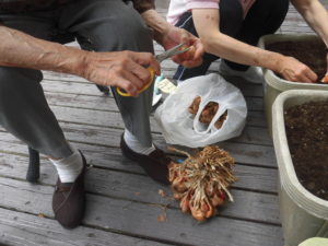そのまま植えていいと思いきや、ネギの頭?をハサミで少し切ってあげて植えないといけないそうです。