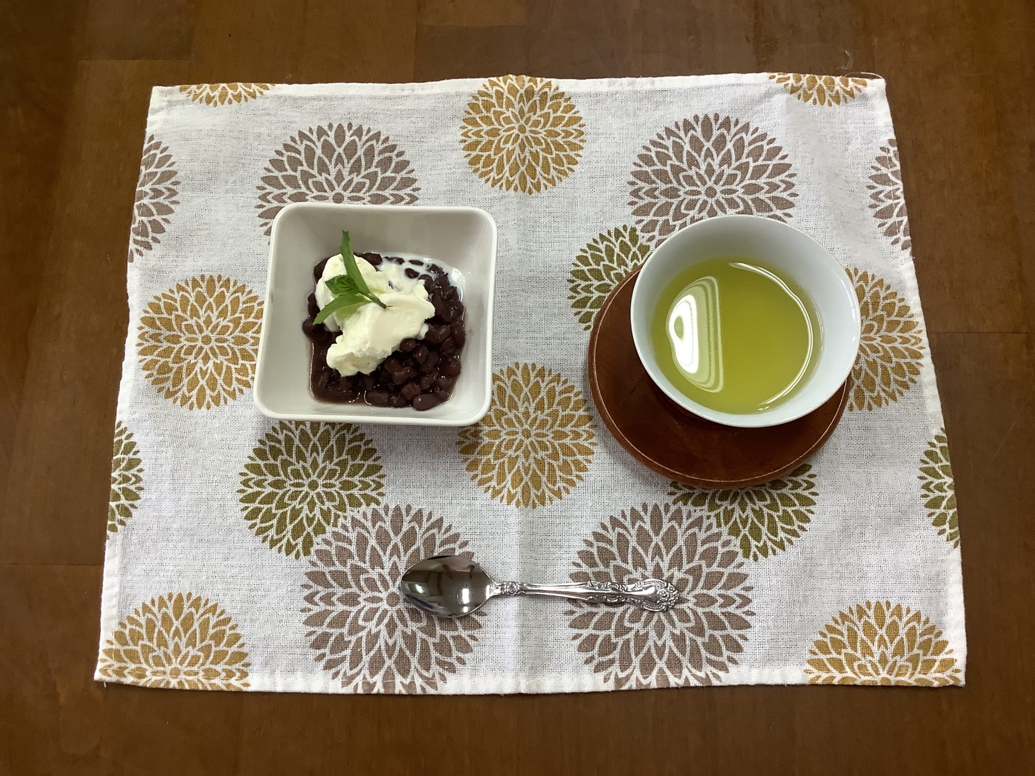 メニューはアイスぜんざいと温かい緑茶🍵