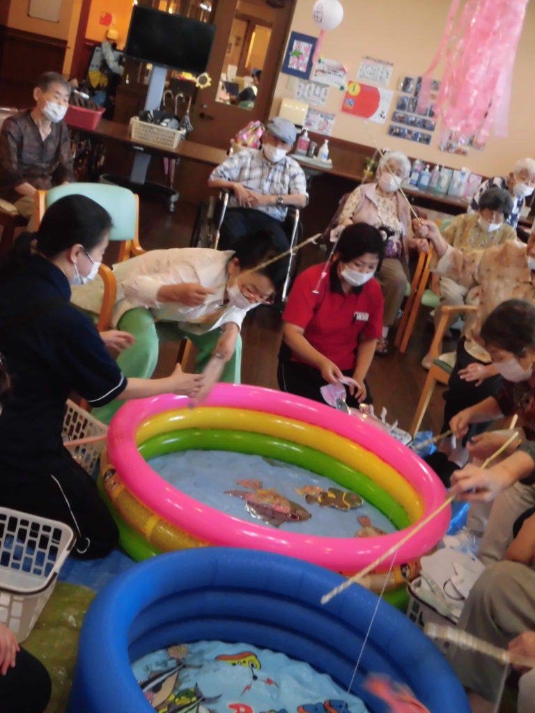 夏のゲーム大会!ということで魚釣りゲームと輪投げ、抽選会を実施しました。