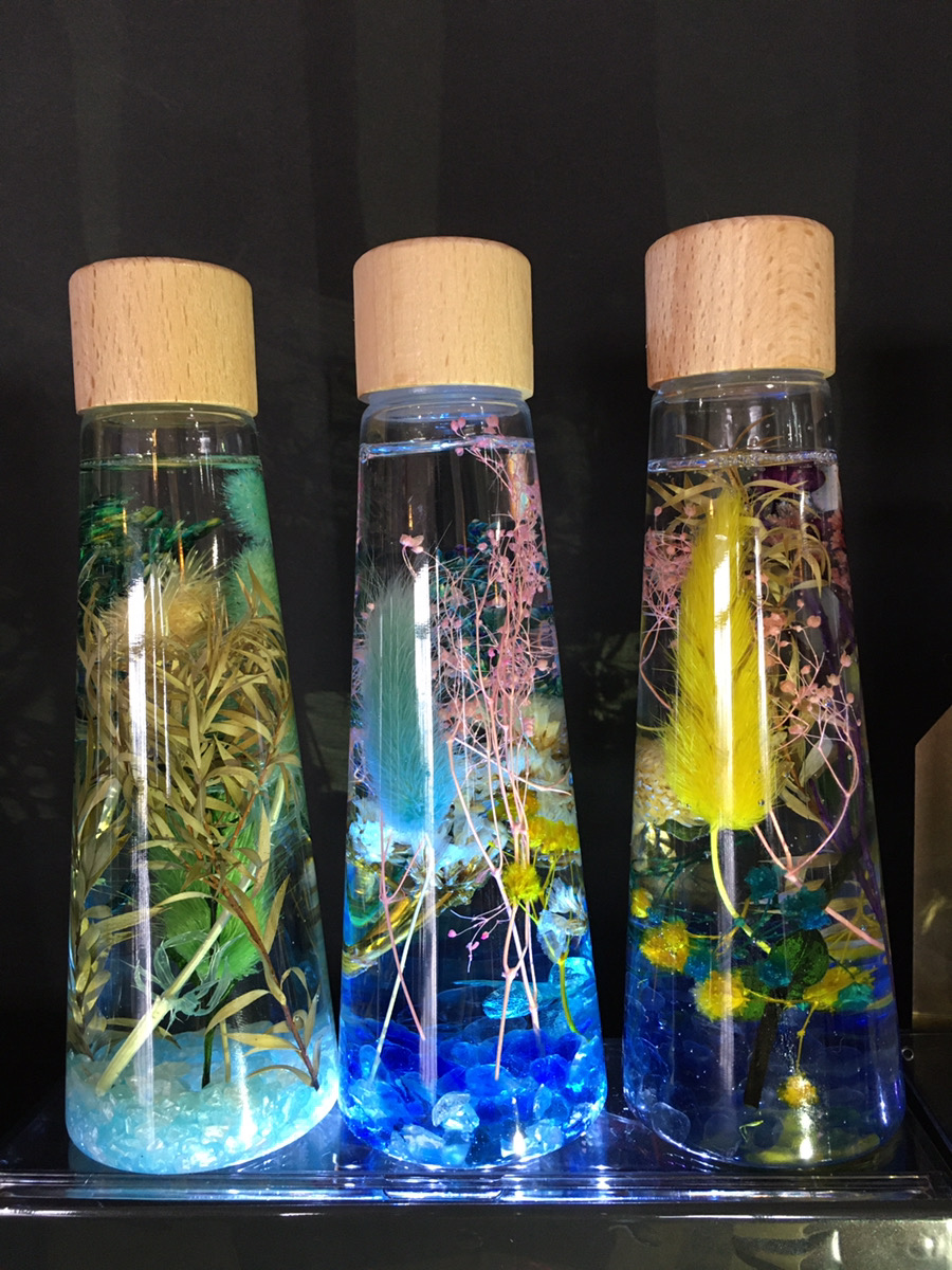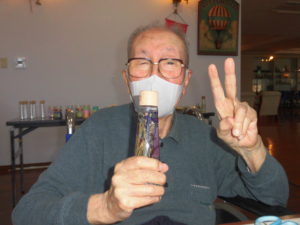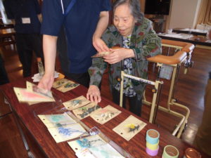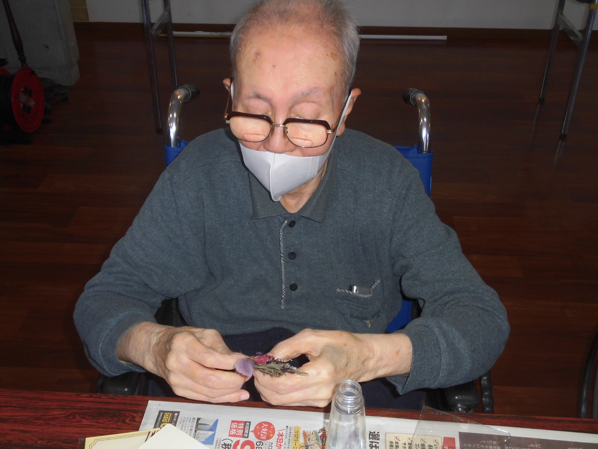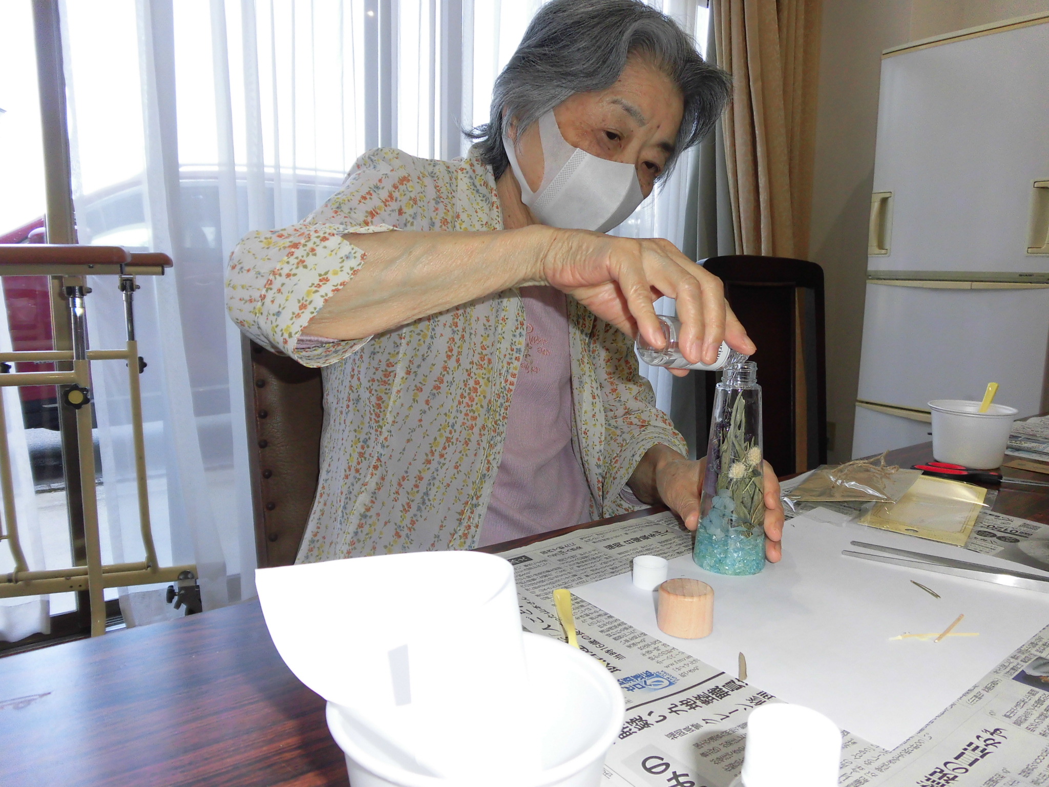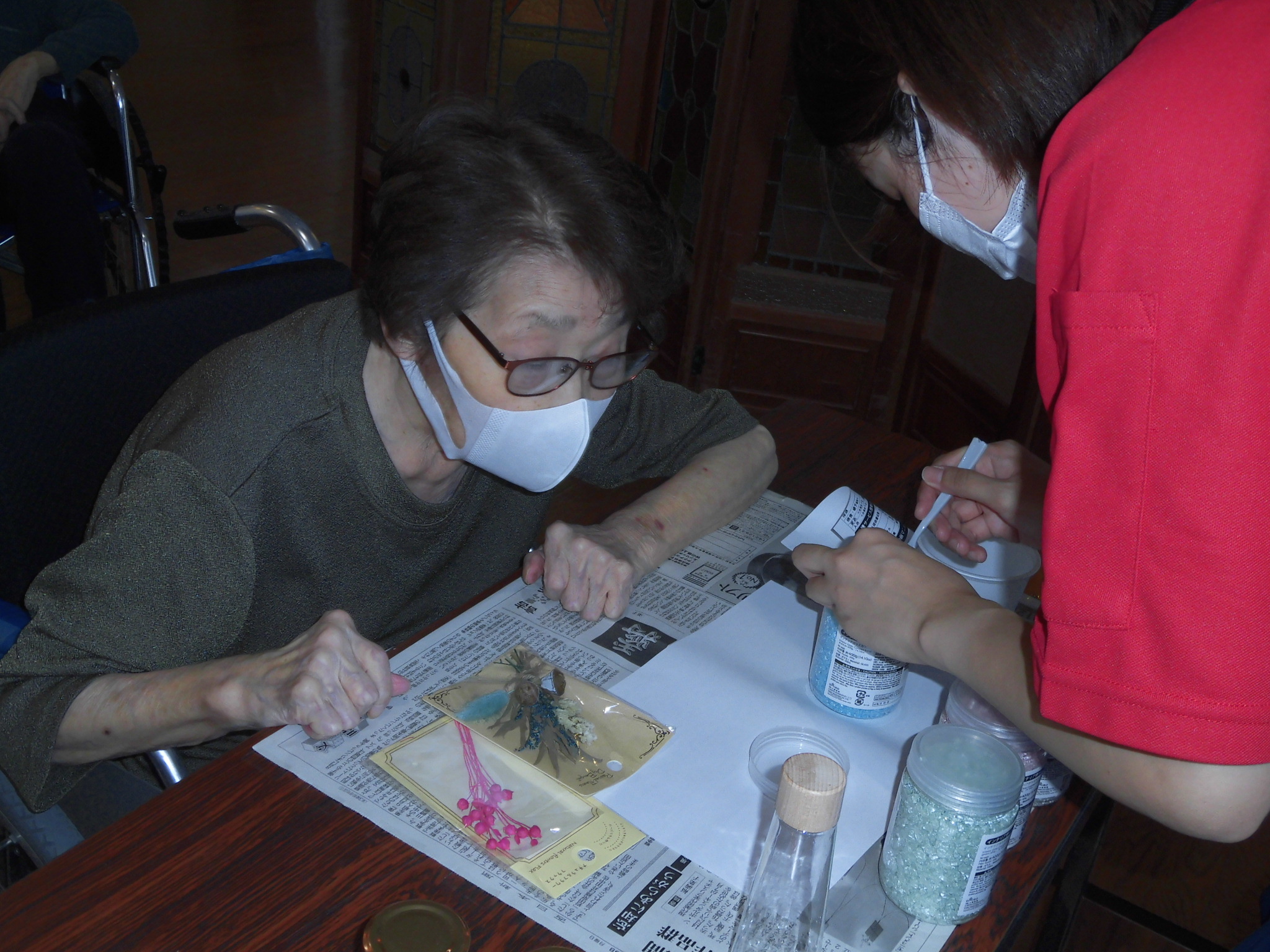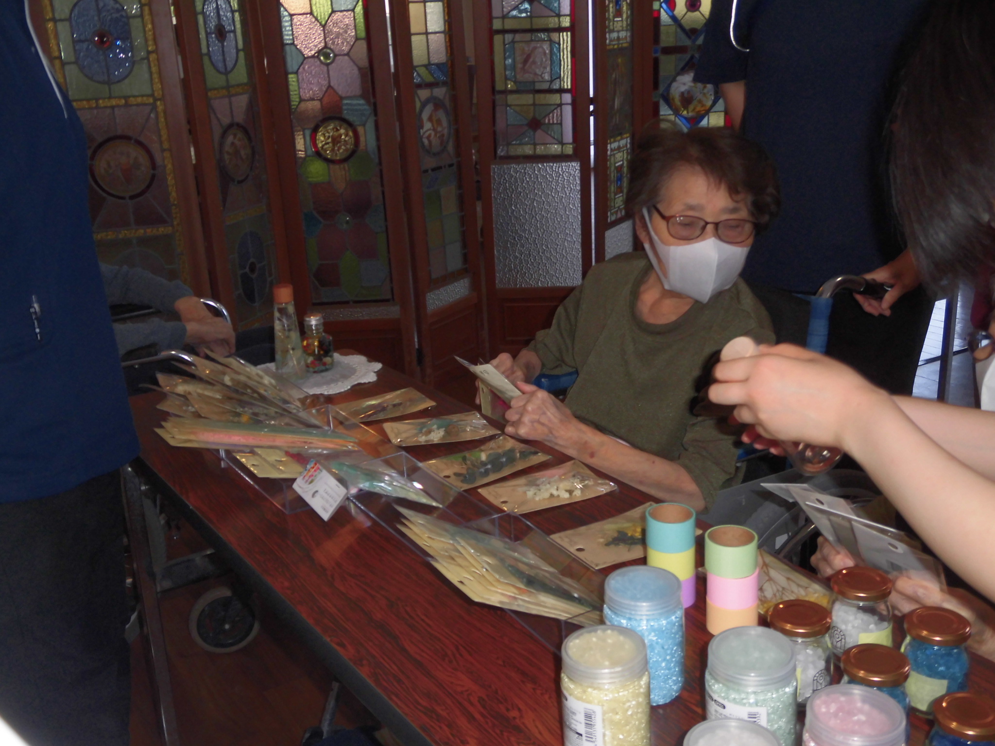 入居者の皆さんはハーバリウムの中に入れる花やビーズを選んでいます😎