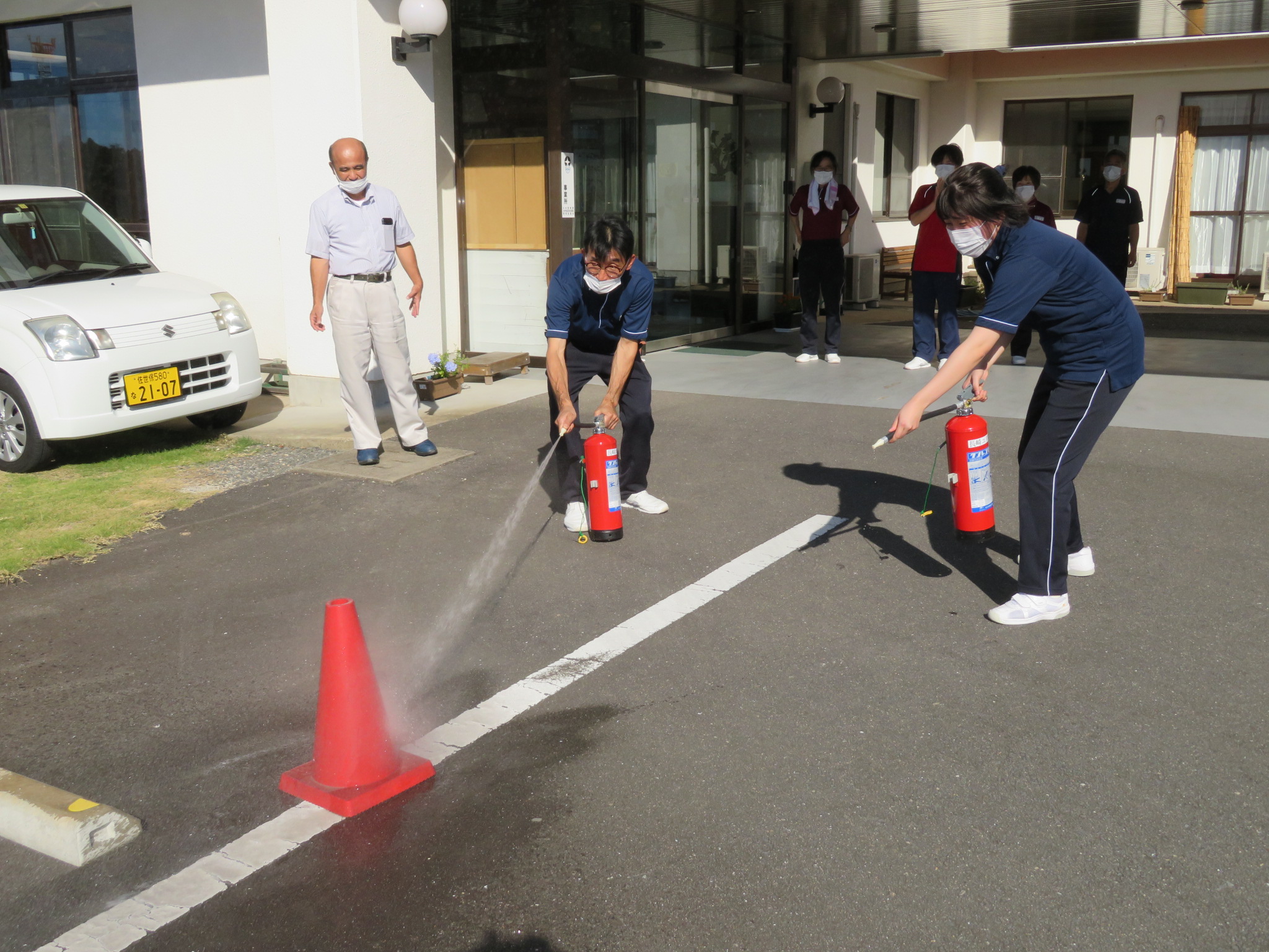 最後に、水消火器を用いて初期消火訓練を職員で行いました(●ˇ∀ˇ●)