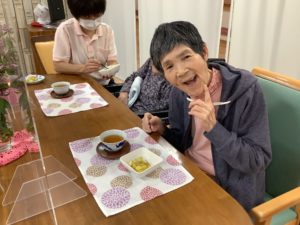 本日のメニューは「ころころ大学芋」と「ほうじ茶」です。