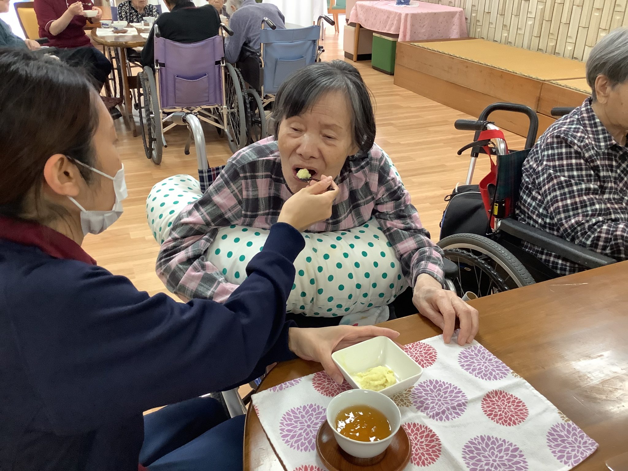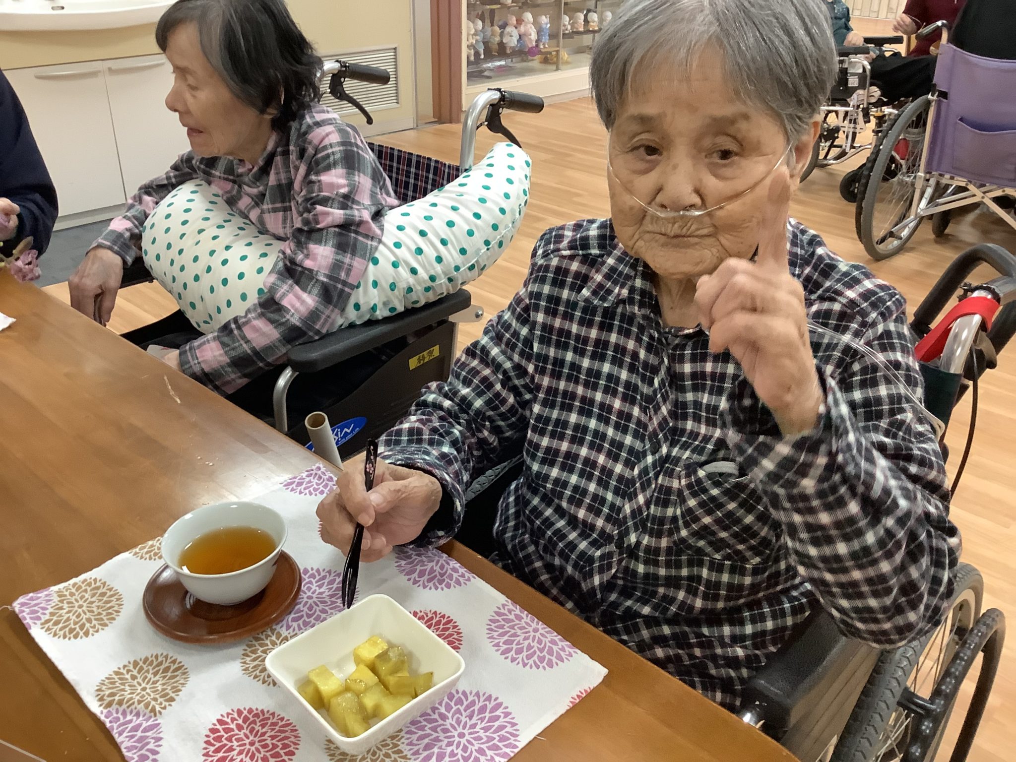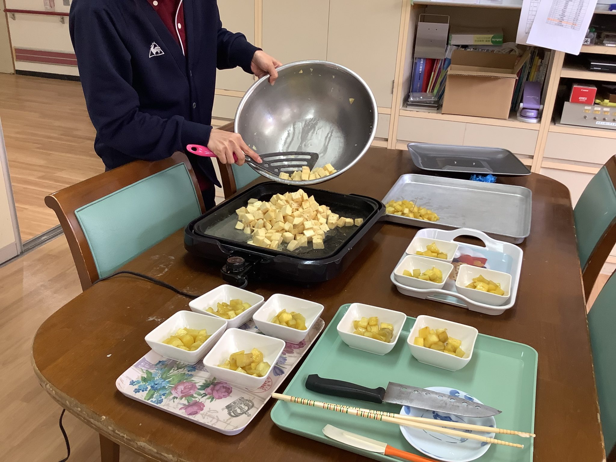 本日のメニューは「ころころ大学芋」と「ほうじ茶」です。