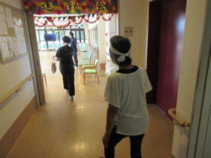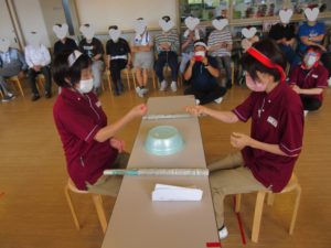 第1種目目は、利用者様全員によるタオルリレー