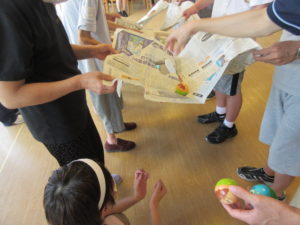 第3種目目は、新聞紙で玉転がし