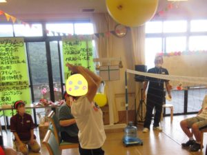 利用者様一生懸命に風船を相手のコートにいれてました