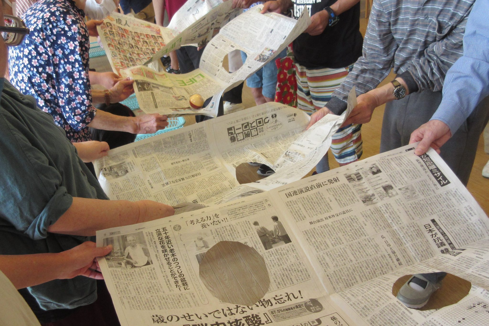 第3種目目は、新聞紙で玉転がし