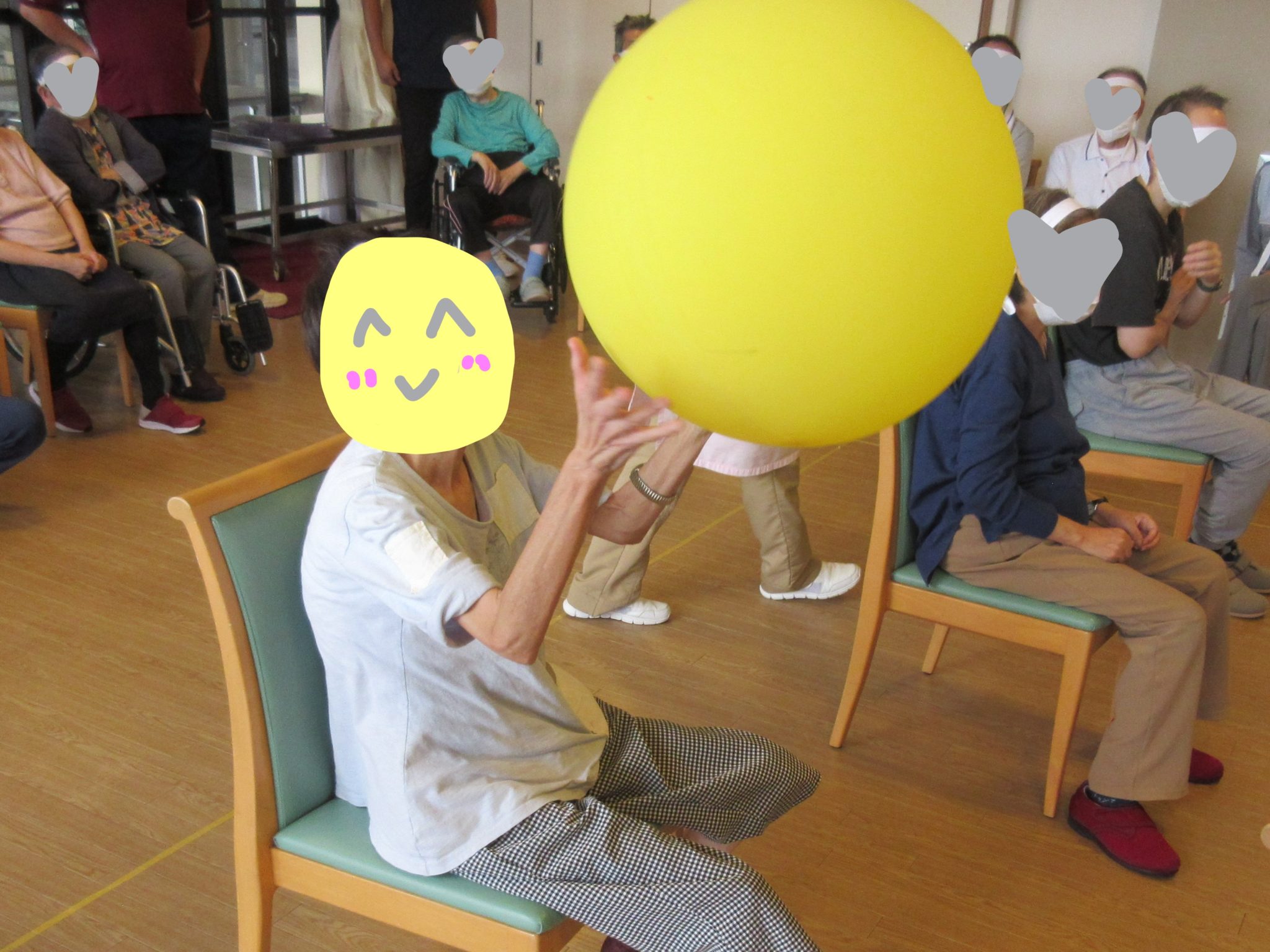 利用者様一生懸命に風船を相手のコートにいれてました