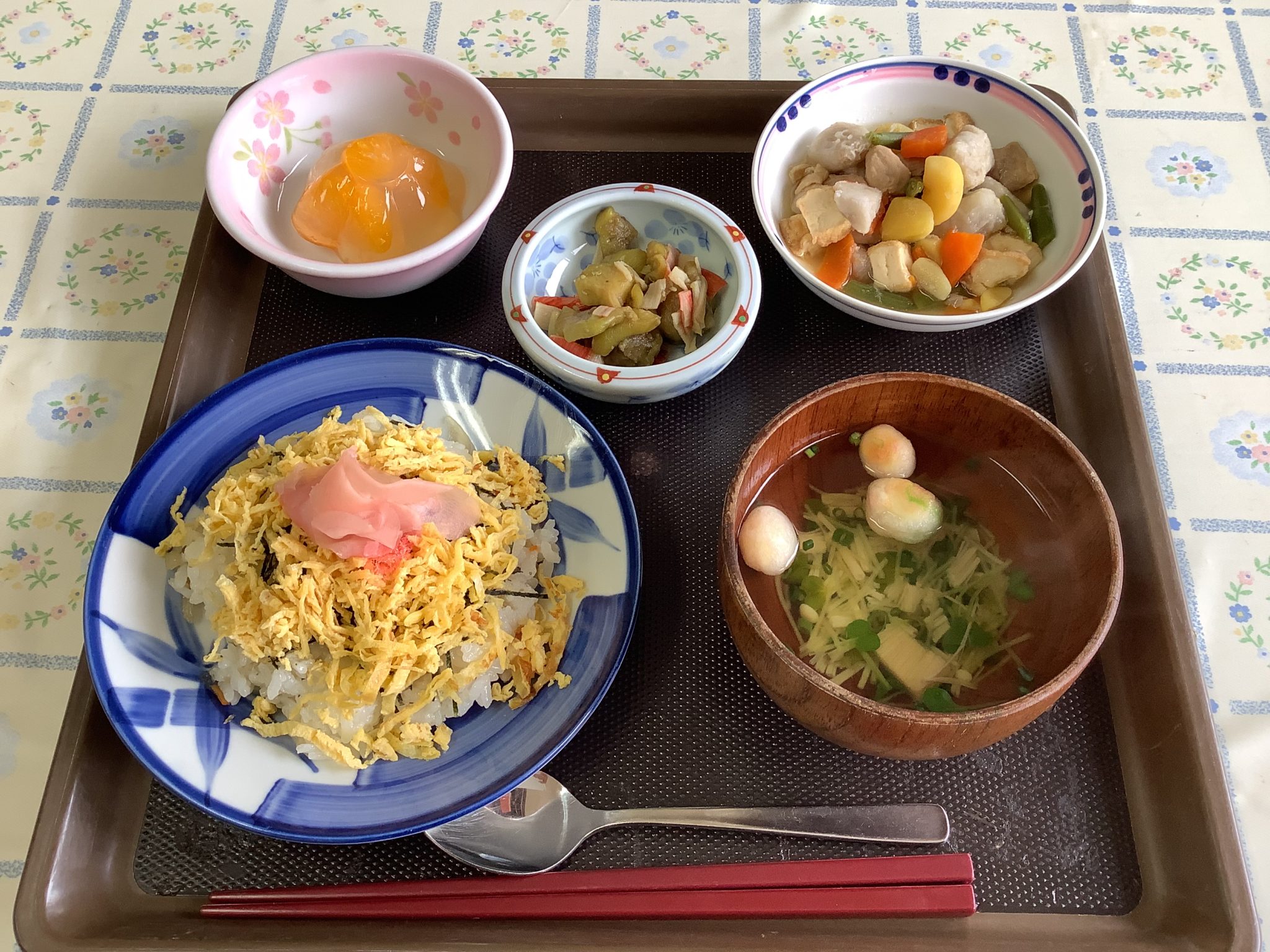 今日は誕生会で昼食には川棚町の郷土料理「くりつぼ」です。(右上)