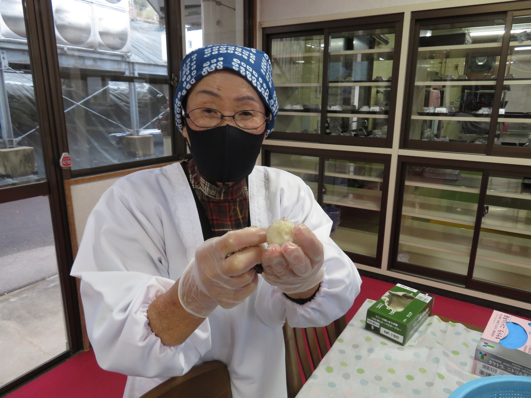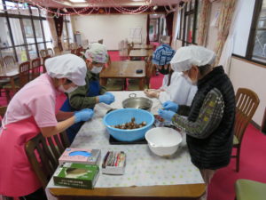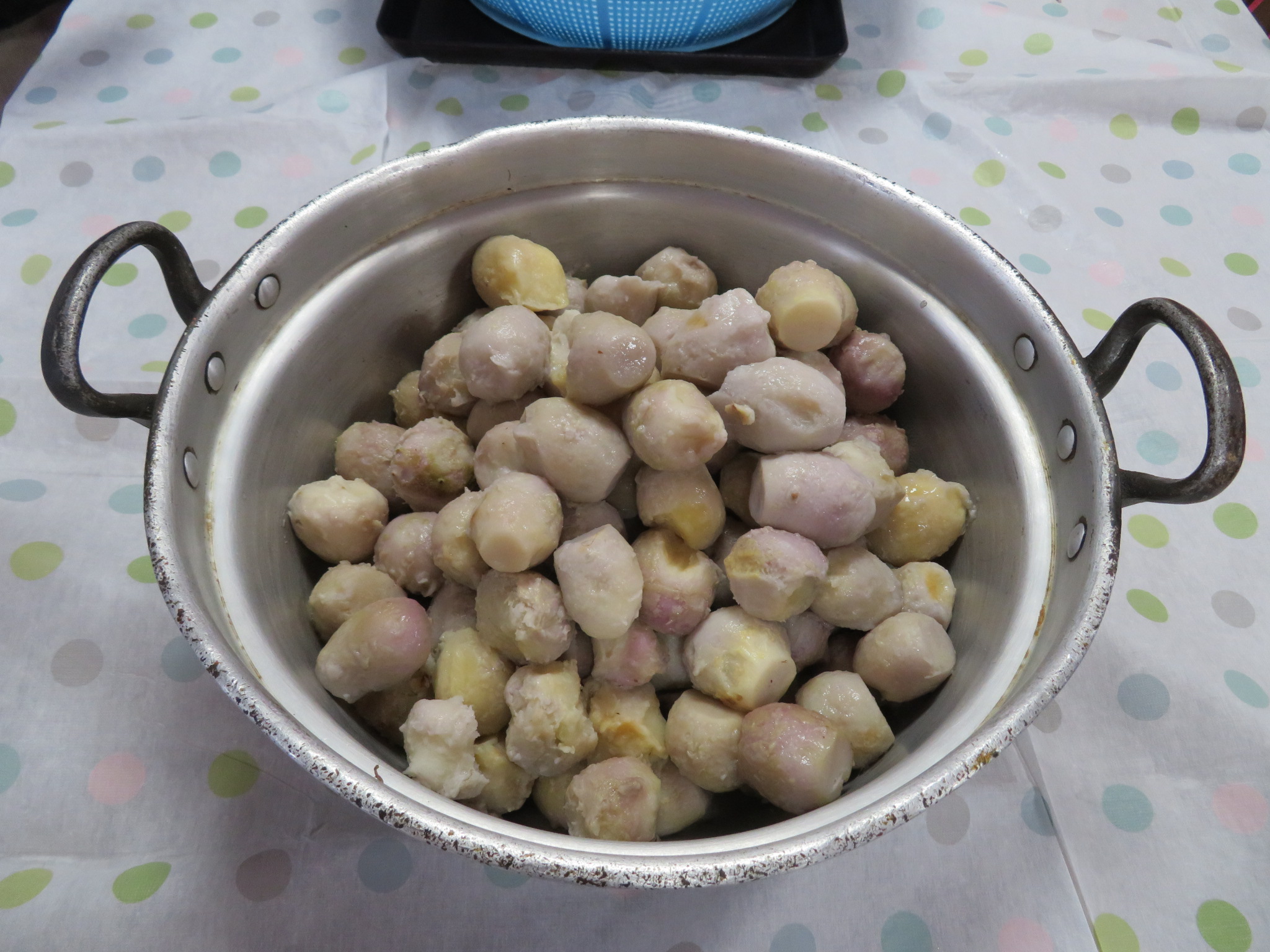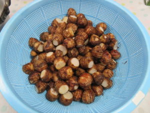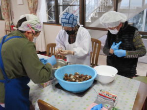 下ゆでした、里芋の皮むき「ツルンとむけたー」とお話されあっという間に作業は終わりました🎵
