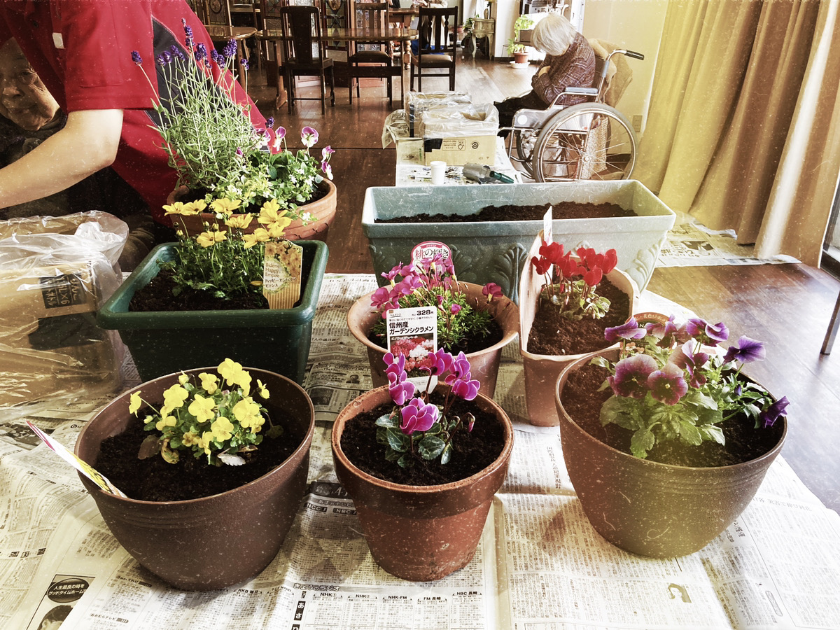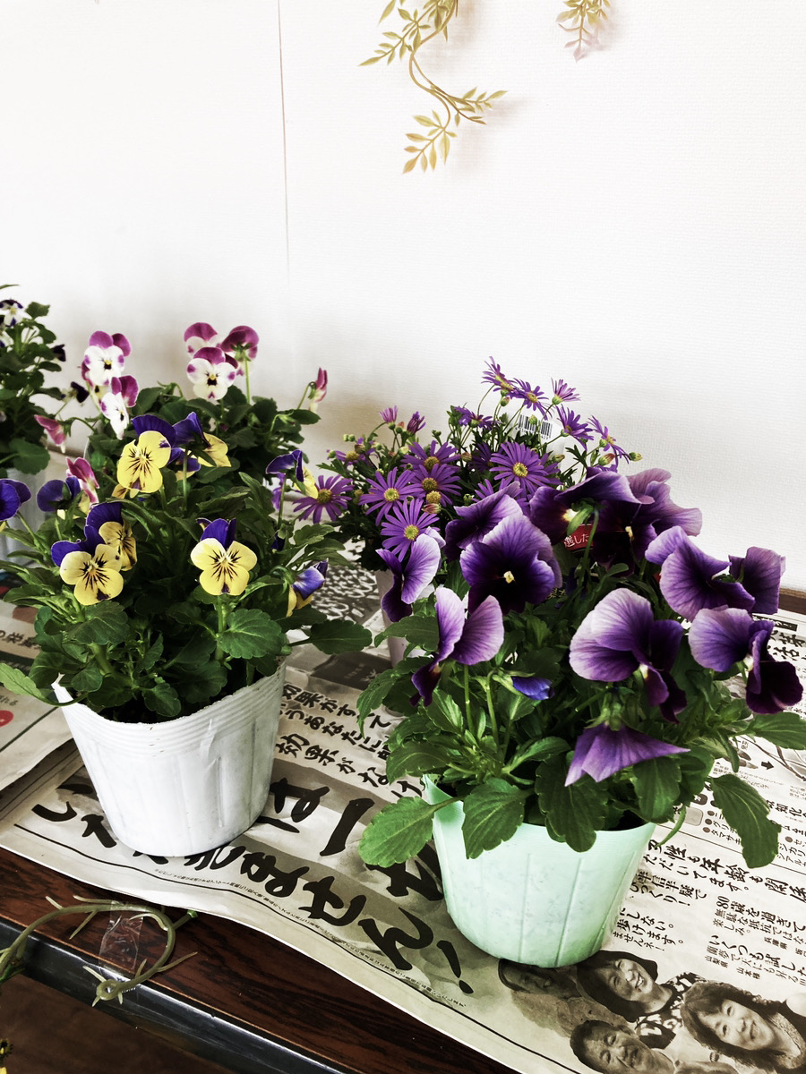 鉢植えに花の植え替えを行いました(*^▽^*)