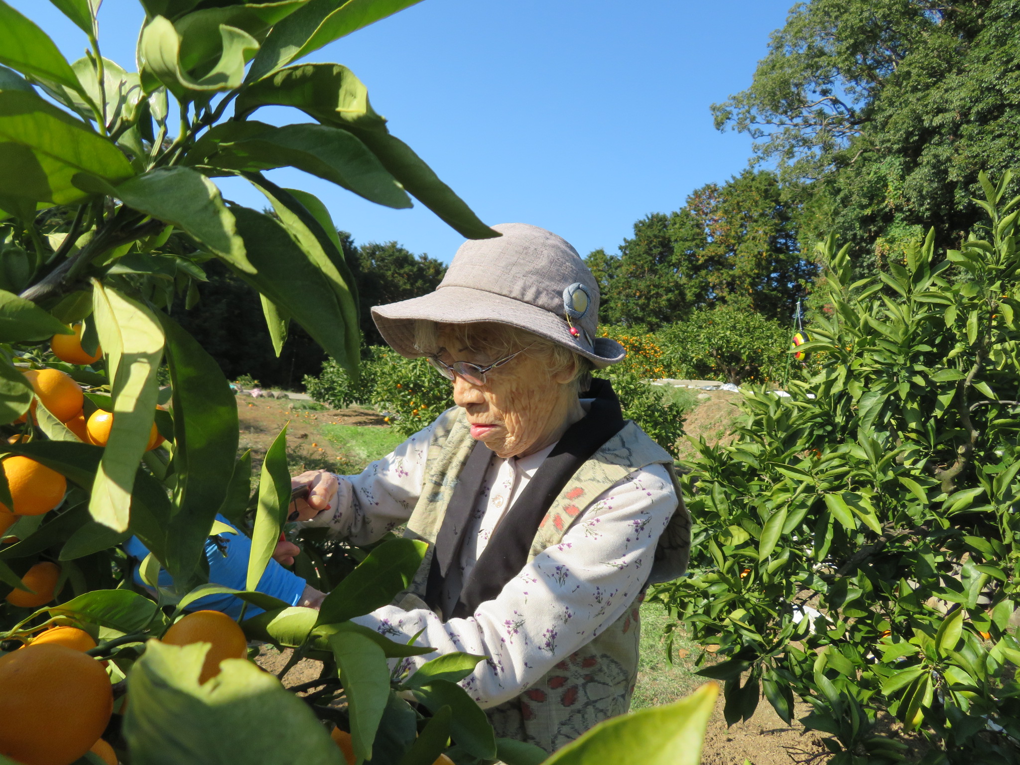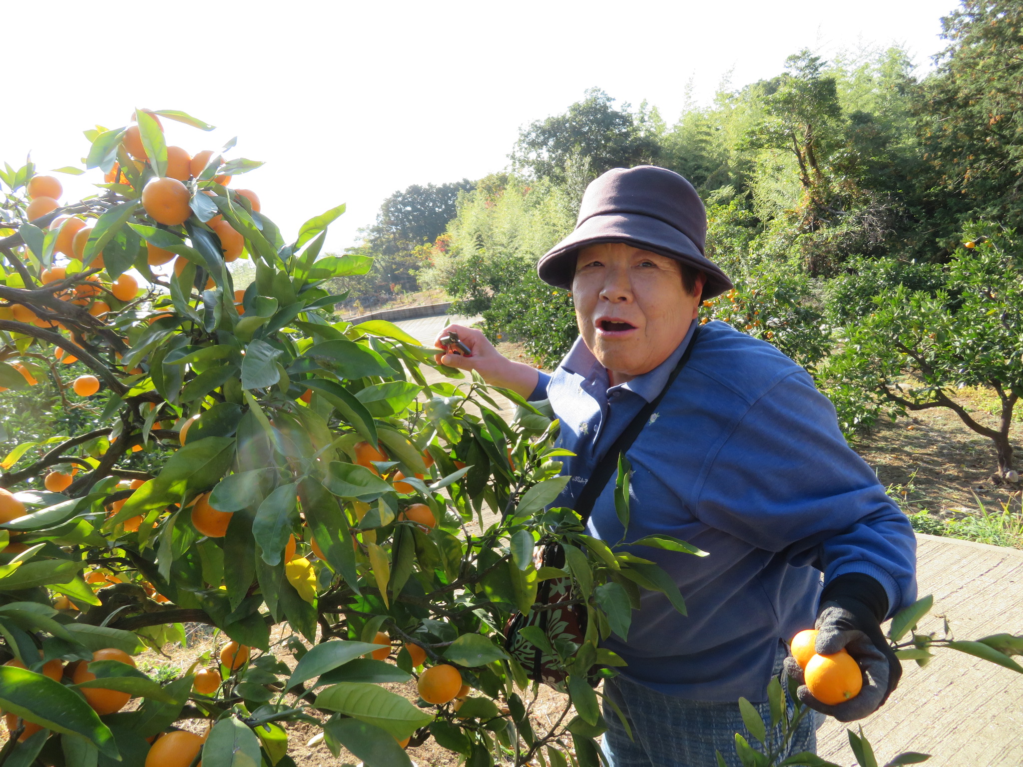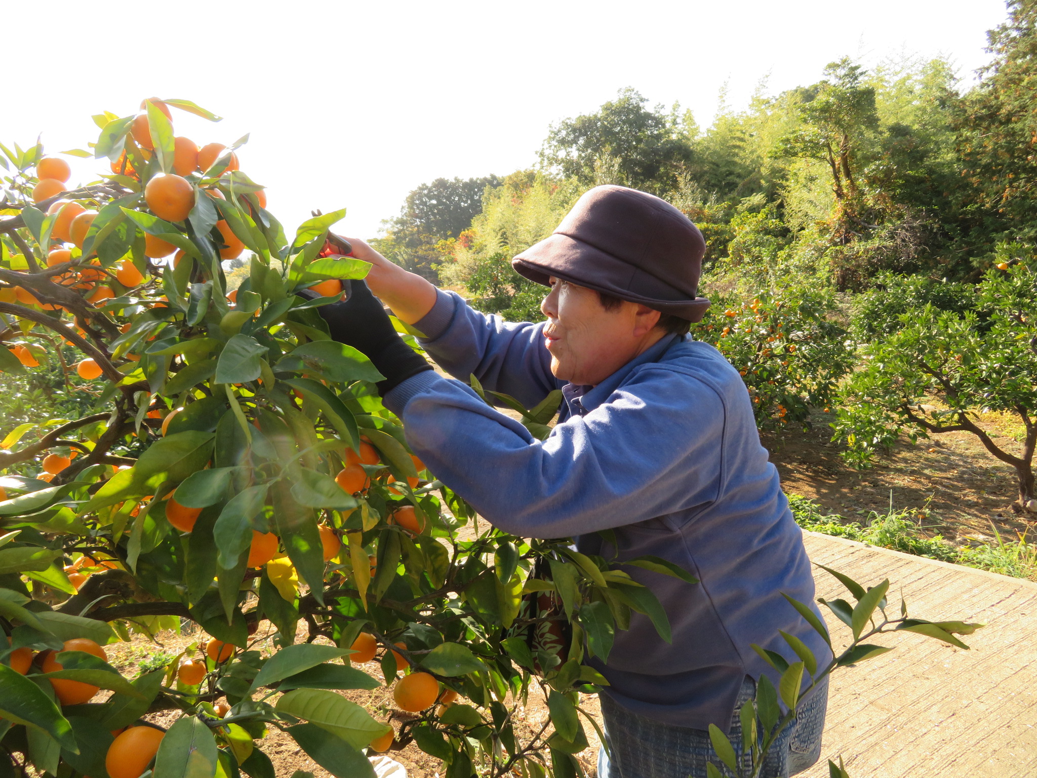「いっぱいなってるねー」「今年のみかんは、甘くておいしいー」と