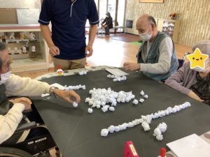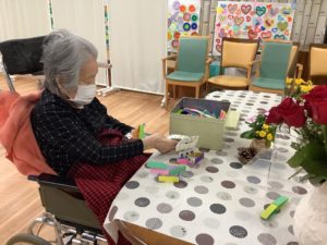 干し柿の作業が早く終わったので 各々積み木で指の訓練や