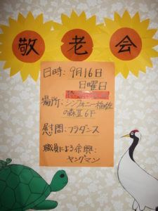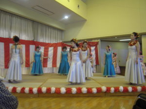 平成30年9月16日(日)敬老会を開催いたしました。敬老会では入所者様の長寿をお祝いするとともに慰問におみえいただいた「マカニオルオル」様にフラダンスを披露していただき、職員によるダンスをご覧いただきました。ご家族も多数おみえになり一緒に楽しむことができました。