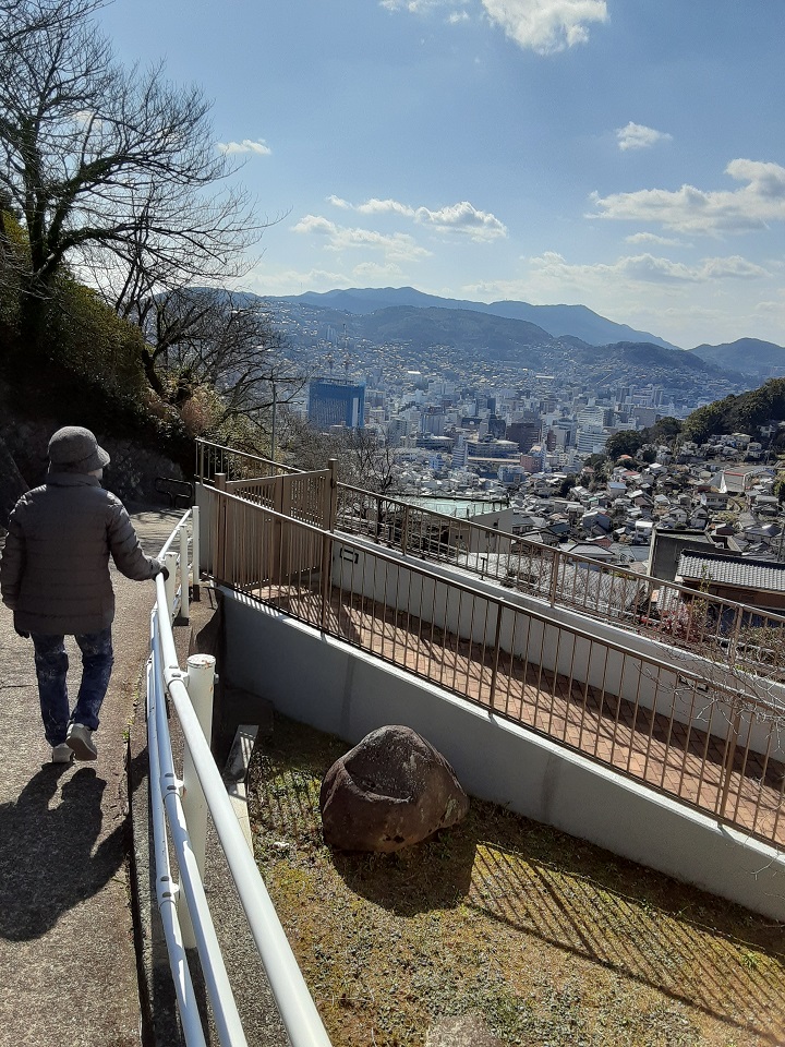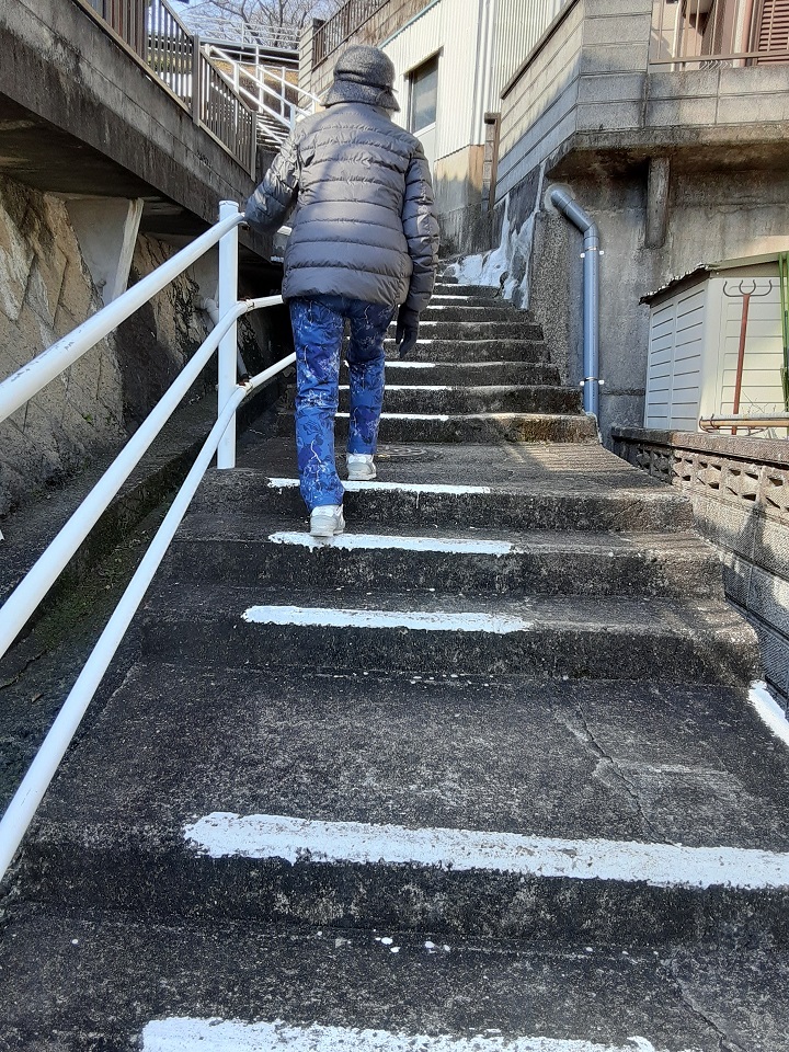 長崎は階段が多いですが、手摺りあり、白線があり、
