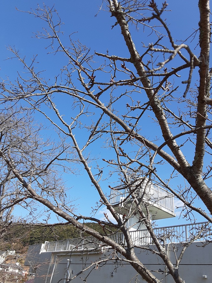 近くの公園は桜の木に小さい芽。