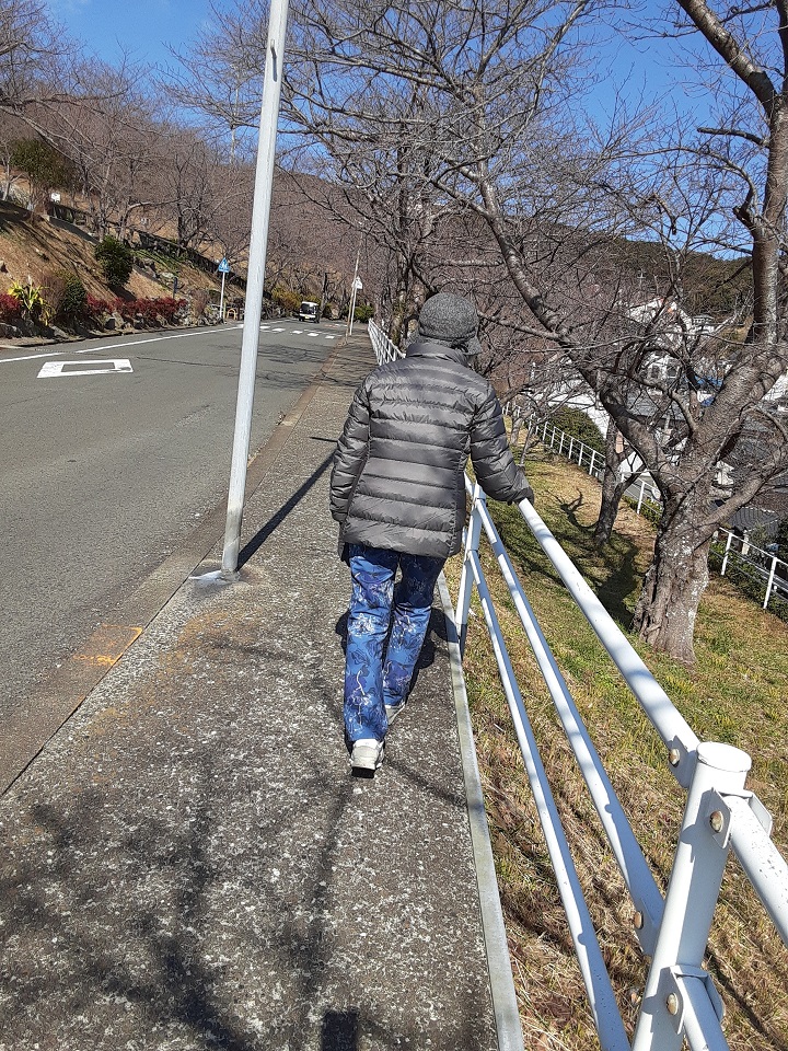 「目が見えにくいけど助かるのよね。」と必死に上り歩く後ろ姿。