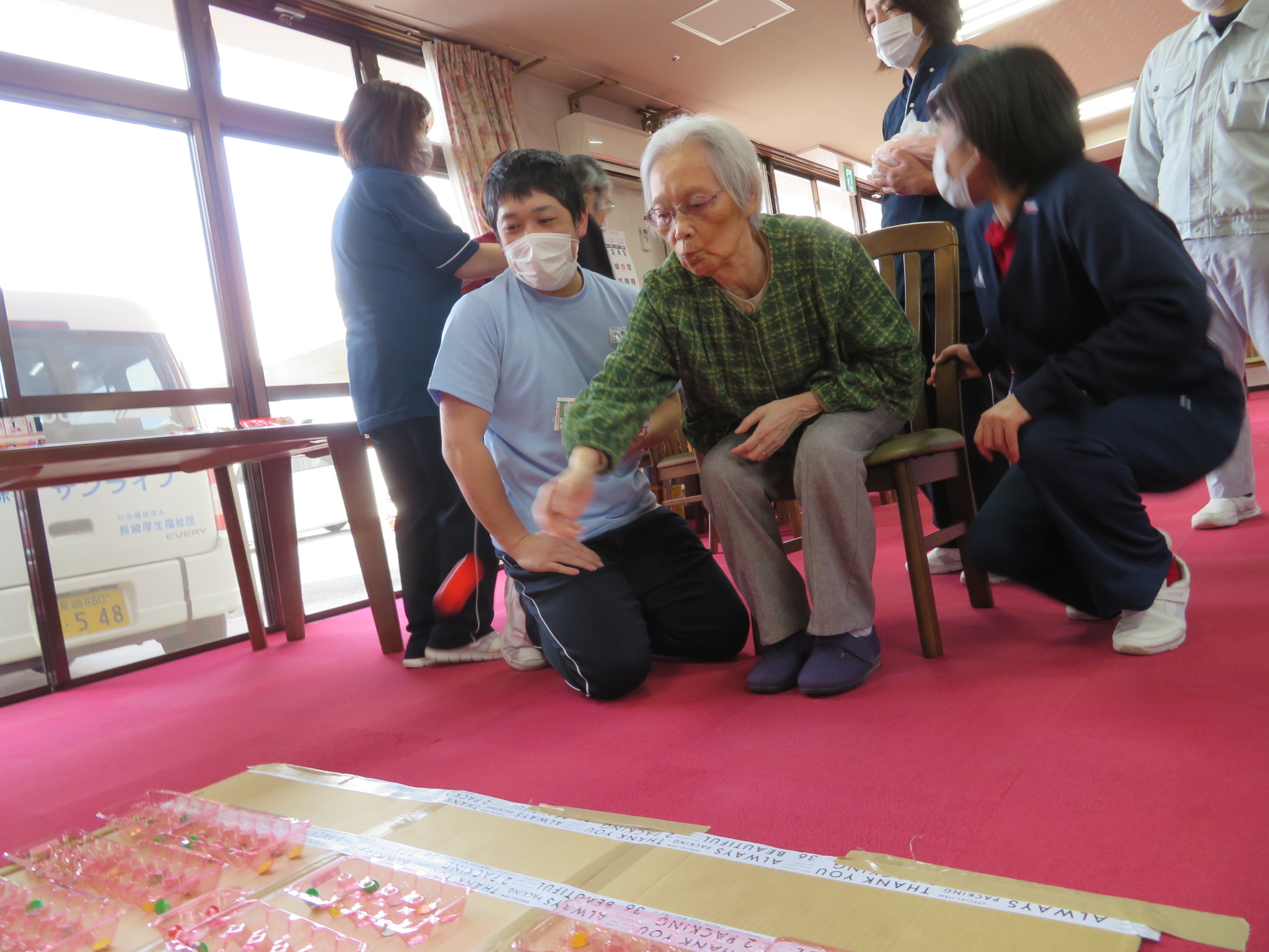 「じゃんけんゲーム」では、職員とのガチンコ対決