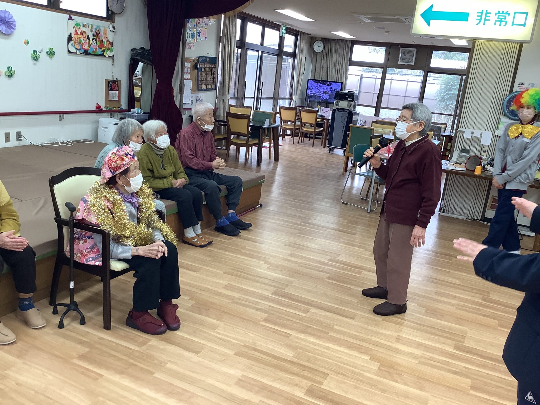 職員手作り、恒例のちゃんちゃんこを着られ素敵な笑顔です!!(^▽^)/