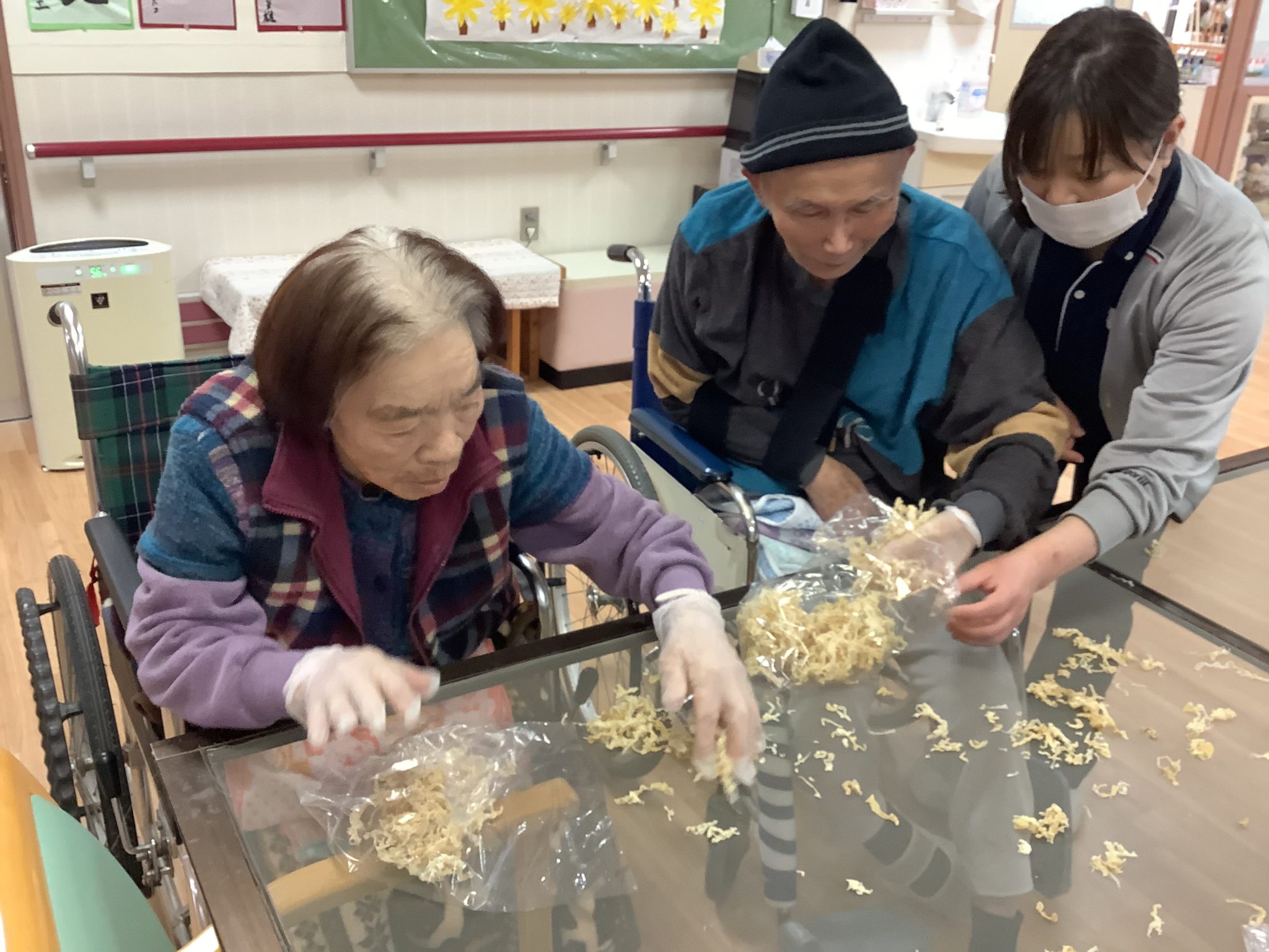 皆さんにも袋詰めのお手伝いをして頂きました。