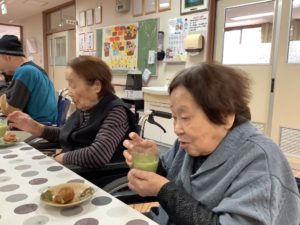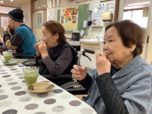 作業の後にはたい焼きと抹茶ミルクを楽しんで頂きました。