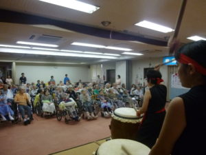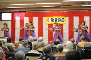 フラダンスではきれいな衣装での踊りや日舞の動きに合わせて、一緒に体を動かされている方もおり、食い入るように見られていました。