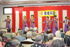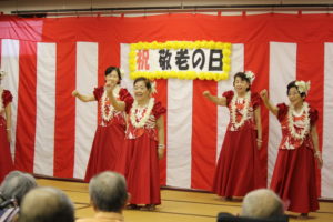 フラダンスではきれいな衣装での踊りや日舞の動きに合わせて、一緒に体を動かされている方もおり、食い入るように見られていました。