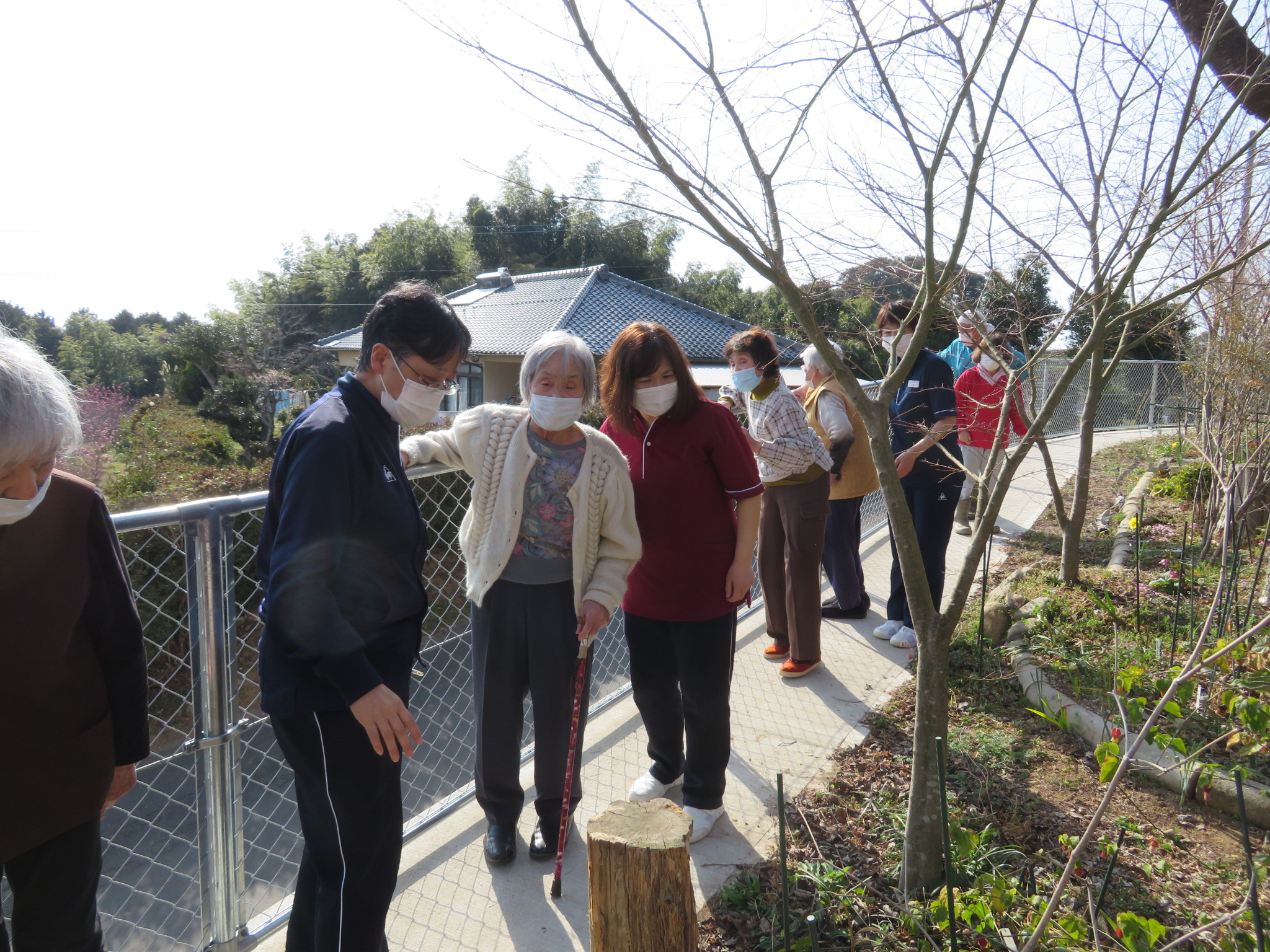 「ここからよく見えますよー」と素敵なお庭にお招きいただいて、高台から見学させて
