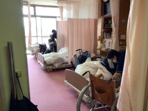 夜間帯では夜勤者2名、宿直者1名で60名のご利用者を避難誘導しなければなりません。