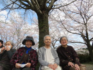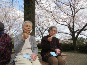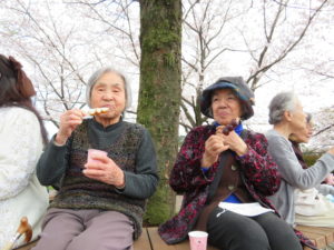 お団子をいただきました。「桜きれいねー」「私は、花より団子よー🍡」と皆様