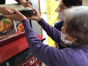 出来上がったオムライスを直接受け取られ皆さんニコニコ(*^-^*)笑顔