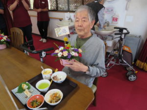 本日の昼食は「赤飯」「茶わん蒸し」付きの豪華メニューでした(●ˇ∀ˇ●)