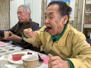 散策の後はお楽しみのおやつタイムです。美味しい!美味しい!と完食されました。