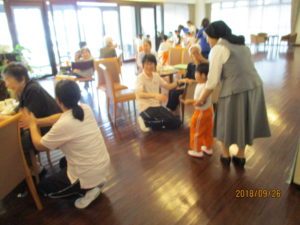 9月26日ケアハウスに親愛園から年中組、年長組の園児16名が慰問に来て下さいました。元気いっぱいの踊りを披露していただき、利用者さんは大喜び!!一緒にアイスクリームを食べました。美味しそうでした💛