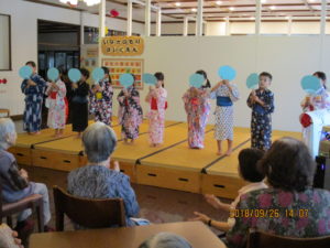 9月26日ケアハウスに親愛園から年中組、年長組の園児16名が慰問に来て下さいました。元気いっぱいの踊りを披露していただき、利用者さんは大喜び!!一緒にアイスクリームを食べました。美味しそうでした💛