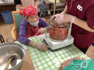 次は、フードプロセッサーにかけ、砂糖を入れ、煮詰めます(^o^)丿