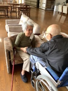 リハビリ目的で奥様が先にご入所され、入院中であったご主人様もリハビリ目的で当施設にご入所されることとなり、半年ぶりの再会となりました💦 コロナ禍で入院先への面会も叶わず、また、奥様も体調がすぐれなかったことからなかなか会えなかったそうです。