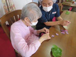 その後、「あじさい」「ほたる」の折紙を皆さん行いました🎵