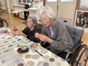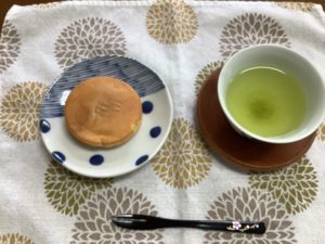 中は餡子が入っています(^o^)丿 彼杵茶と一緒に食べて頂きました🍵