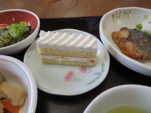 本日は「赤飯」と「ケーキ」が付いたスペシャルメニューです🍰