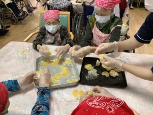 「こりゃ難しかね~」と仰いながらも「手の運動になる」と積極的に皆さん手伝って下さいました(^^♪