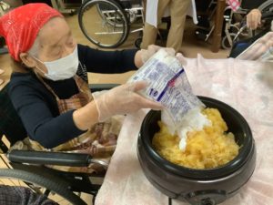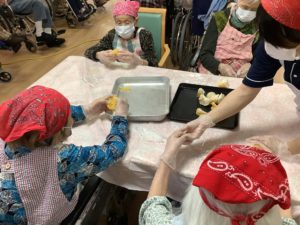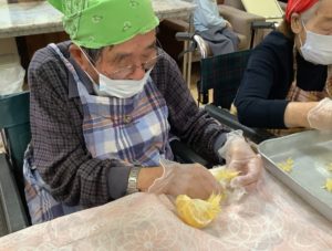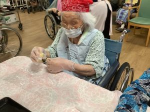 「こりゃ難しかね~」と仰いながらも「手の運動になる」と積極的に皆さん手伝って下さいました(^^♪