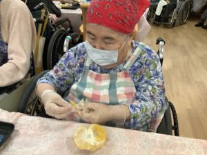 まず皆さんに甘夏の皮むきを手伝って頂きました🍊