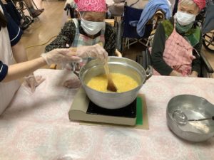 皮を剝いた後は、砂糖と外皮を入れ、煮込んでいきますφ( ・ω・〃)