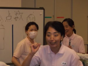 秋晴れの10月14日(日)午後より、4階ショートステイフロアーにて風船バレー大会を開催しました。