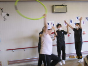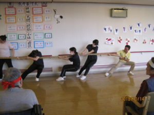 去る10月14日(日)鶴舞苑にて秋の運動会を開催しました。「障害物競争」「玉入れ」「お菓子取り競争」などの競技を行い、競技の中でも大盛り上がりの種目だったのは、職員対抗の「綱引き」と「フラフープくぐり」でした(これがなんと本当にガチンコでした!)。