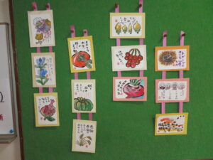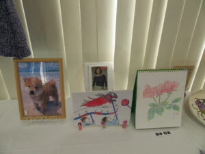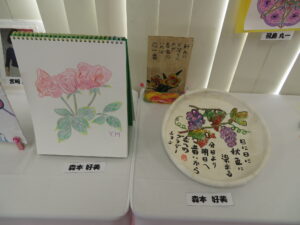 日頃の教室活動の作品を展示しています。入居者様の自信作が並んでいます。