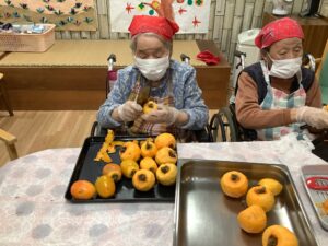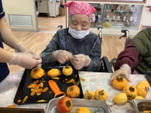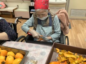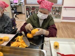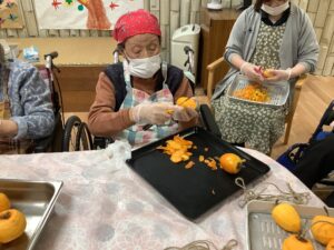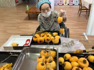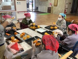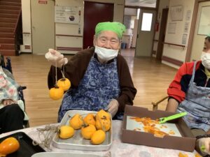 「家でいっぱい作りよった」「おしりの皮を少し残すとよ」とおしゃべりしながら100個以上あった柿もあっという間に無くなってしまいましたΣ(゚Д゚)