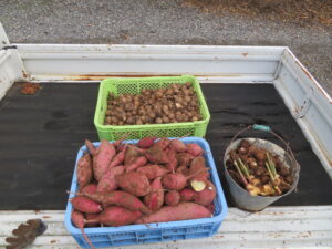 11/23(水)午後から、施設の畑にてサツマイモと里芋を掘りました🎵